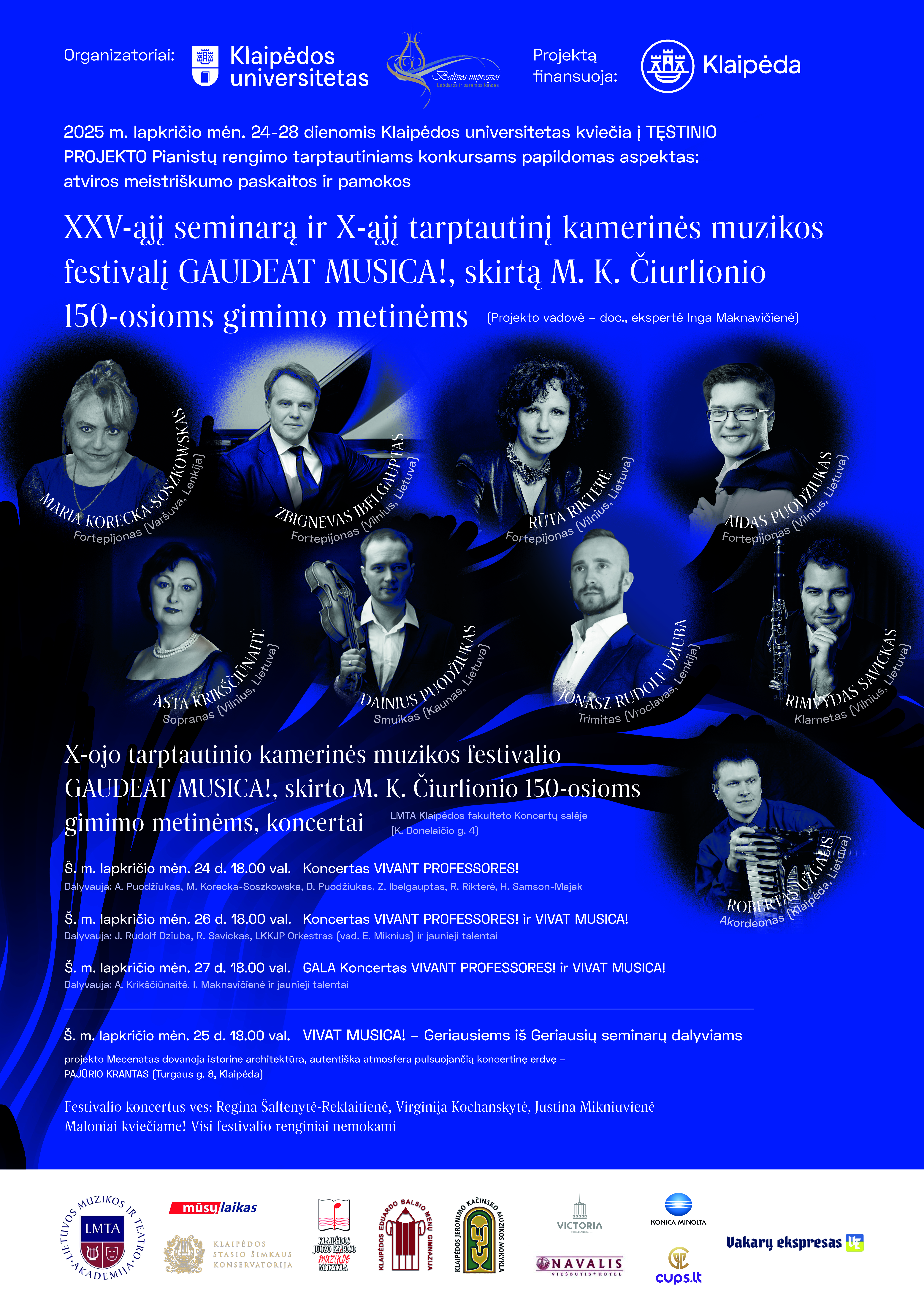 2025 m. lapkričio mėn. 24–28 dienomis kviečiame į XXV-ąjį muzikos mokytojų seminarą ir X-ąjį tarptautinį kamerinės muzikos festivalį GAUDEAT MUSICA!