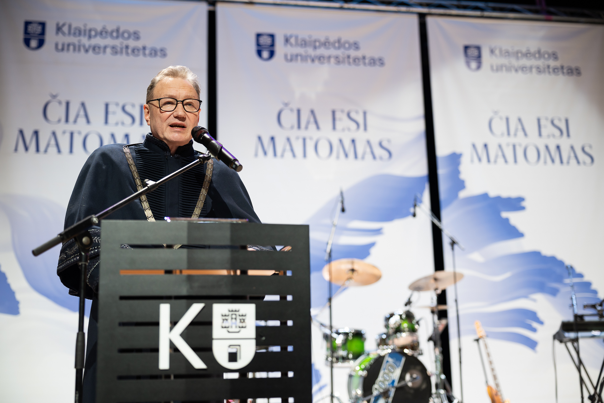 Sveikinimo kalboje Klaipėdos universiteto rektorius prof. dr. Artūras Razbadauskas pabrėžė, kad universitetas absolventams yra daugiau nei studijos – tai erdvė, kurioje kiekvienas studentas yra matomas per savo idėjas, pastangas ir augimą. Pasak rektoriaus, „Čia esi matomas“ – ne tik šių metų universiteto šūkis, bet ir principas, kuriuo grindžiamas artimesnis ryšys su dėstytojais, didesnis grįžtamasis ryšys bei realios galimybės studentams įsitraukti į projektus, praktikas, tyrimus ir tarptautines patirtis.