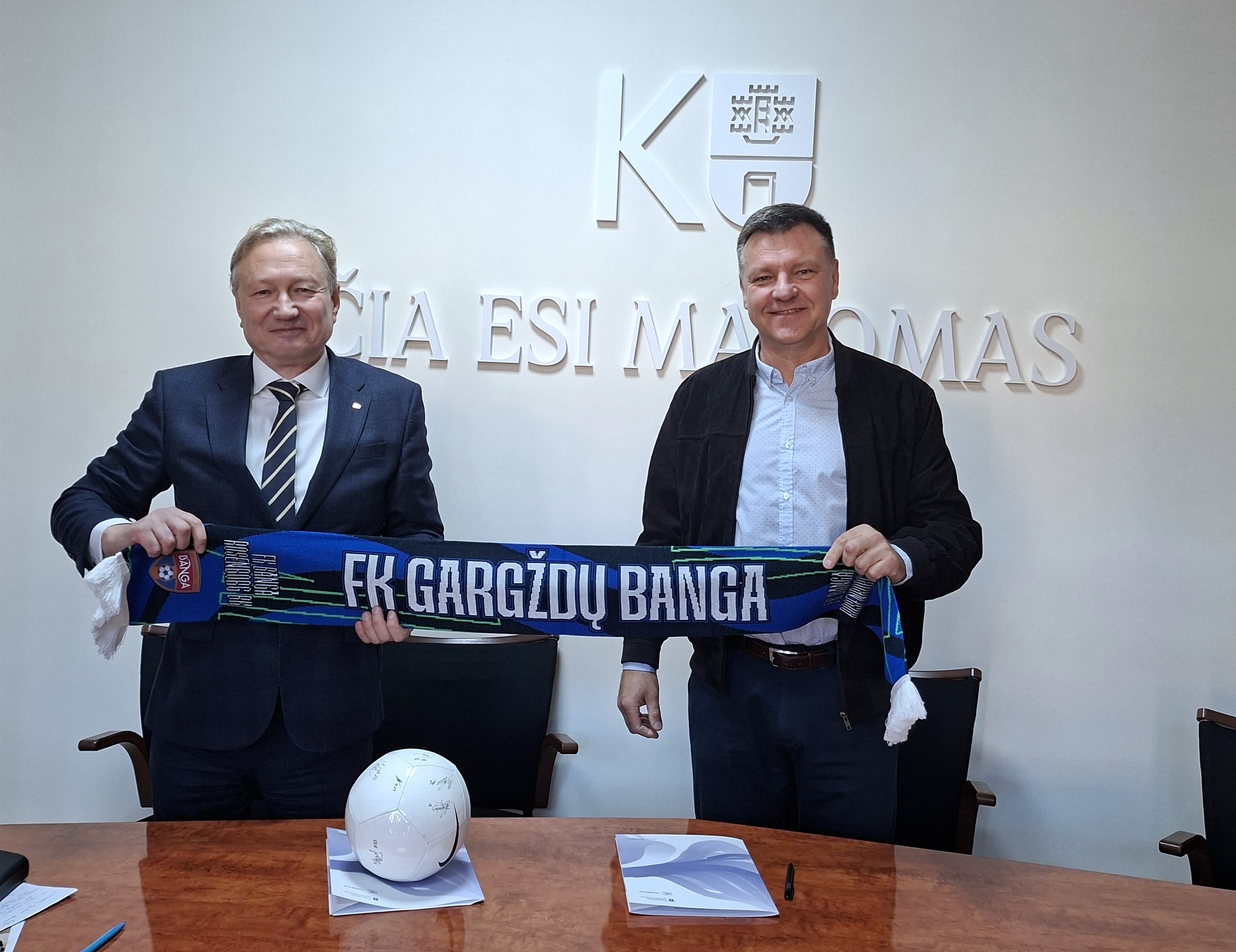 Sutartį pasirašė Klaipėdos universiteto rektorius prof. Artūras Razbadauskas ir VšĮ „Gargždų futbolas“ direktorius Rimantas Mikalauskas. Šis susitarimas – natūrali jau kurį laiką vykstančio bendradarbiavimo tąsa ir jo oficialus įtvirtinimas.